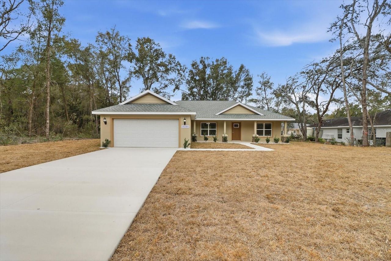 Welcome to your brand-new home in Citrus Springs, where quality craftsmanship meets everyday comfort. This thoughtfully designed 3-bedroom, 2-bath residence is newly completed and built with care by Empire Construction. From top to bottom, it offers stylish upgrades, energy efficiency, and a layout that suits today's lifestyle. As you enter, you're greeted by tall ceilings and an open floor plan that makes the most of every square foot. The main living area connects effortlessly to the kitchen and dining space, creating a perfect setup for gathering with friends or enjoying quiet evenings at home. The kitchen is beautifully finished with granite counters, soft-close cabinets, and sleek hardware, all brought together by durable luxury vinyl flooring that runs throughout the home. Natural light pours in through energy-efficient windows and a wide sliding glass door, which leads to a covered patio in the backyard. It's the ideal spot to relax, grill out, or enjoy Florida's sunshine in peace. The owner's suite is set apart from the guest rooms for privacy and includes elegant ceiling details, dual sinks, and a tiled walk-in shower. Behind the scenes, this home is just as impressive. Upgraded insulation in both walls and ceiling helps keep utility bills low. Underground electrical service adds to the clean look of the property, and a meter/main combo provides added convenience for future expansion. The exterior is just as inviting, with a classic front porch ready for your rocking chairs. A spacious two-car garage with a side access door offers additional storage and functionality. This home is perfectly positioned within a short drive to local rivers, springs, and parks, not to mention shopping, dining, and new retail centers nearby. It's the kind of place that gives you room to breathe without being far from the essentials. If you're looking for something new, well built, and ready to go, this one deserves your attention. Builder incentives and closing cost assistance may be available, reach out for details and come see the difference for yourself. Homes like this don't stay on the market long.