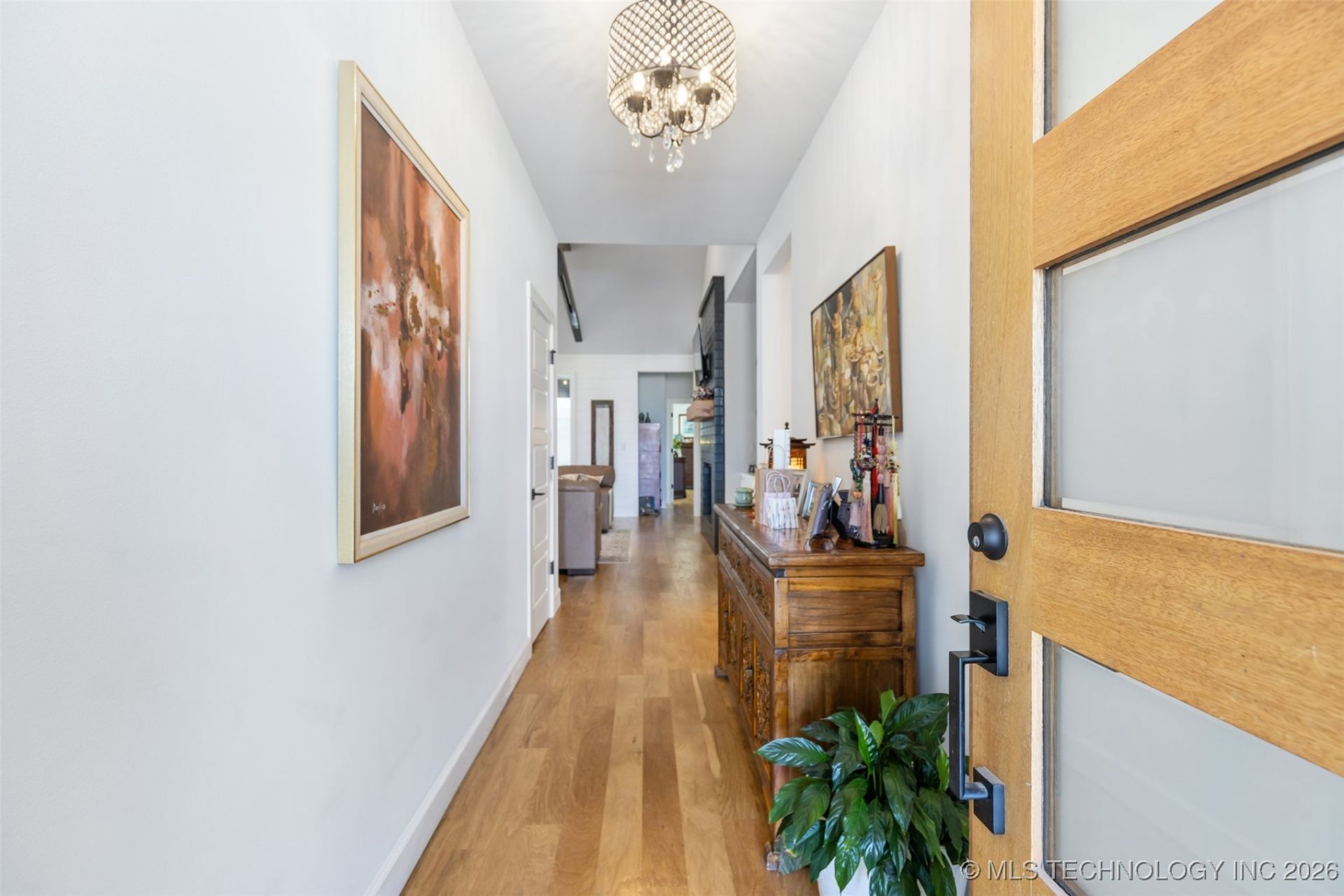 Welcome to this stunning single-family home located in the desirable Torrey Lakes community of Bixby. Built in 2022 and offering a thoughtfully designed living space on a 0.23-acre lot, this home blends modern comfort with upscale finishes throughout. The main level features a spacious primary suite with a luxurious en-suite bath, complete with a separate shower, along with a second bedroom offering its own private bath-ideal for guests or multigenerational living. An additional half bath on the main level adds convenience. At the heart of the home is a large great room and dining combination, highlighted by a gas-log fireplace flanked by custom built-ins on both sides. The open kitchen is a chef's dream, showcasing a large island, Whirlpool stainless steel appliances, wall oven, five-burner built-in gas range, dishwasher and an oversized pantry. Step outside to enjoy the covered patio and fully equipped outdoor kitchen, featuring a mini fridge, TV mount, and automatic sun/wind screens-perfect for year-round entertaining. Upstairs, you'll find two generously sized bedrooms with walk-in closets, a Pullman bath, and a versatile family/TV room with additional over-garage storage. Additional highlights include a three-stall garage with professional epoxy floors, a hard plumbed vac system for the garage that stays with the home, full privacy fencing, custom landscaping and a security system. This home offers exceptional functionality, quality, and style in a sought-after neighborhood. A must-see property that truly has it all. Buyer to verify all information. Call the listing broker for more details.